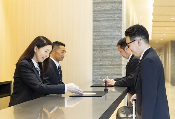 - ホテルの顔として、ご宿泊されるお客様のチェックイン、チェックアウトの手続きをはじめ、